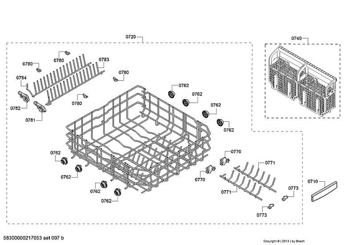 Replacement silverware basket for Bosch dishwashers. Sits in the lower rack to organize utensils during wash cycles. Order if yours is cracked or missing.