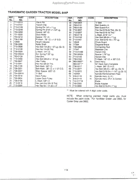 Parts for Mtd 14BS845H0788: 50" Cutting Deck (P) Page 2 Parts