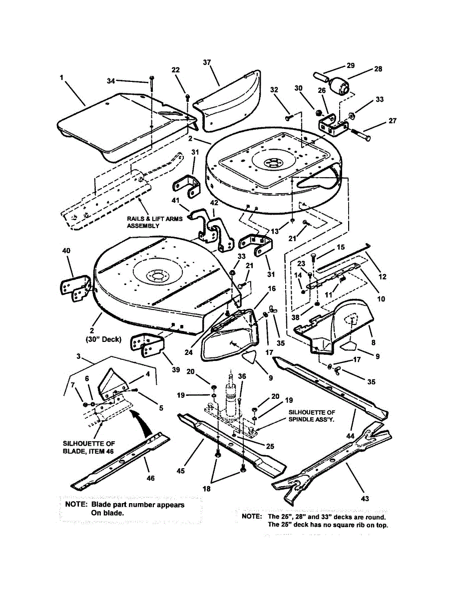 Parts for Snapper W280922B: Cutting Decks, Deflectors Parts