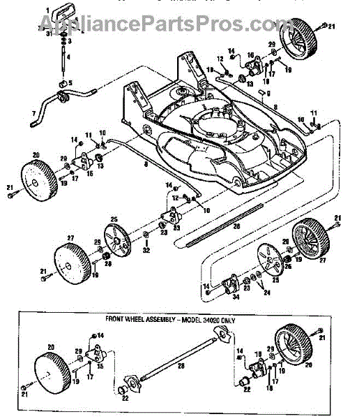 Parts for Troy-Bilt 34021: Cutting Height Control And Wheel Assemblies Parts