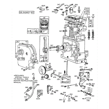 Parts for Briggs & Stratton 170432-1693-99: Cyl,Crankcase,Piston,Controls Parts