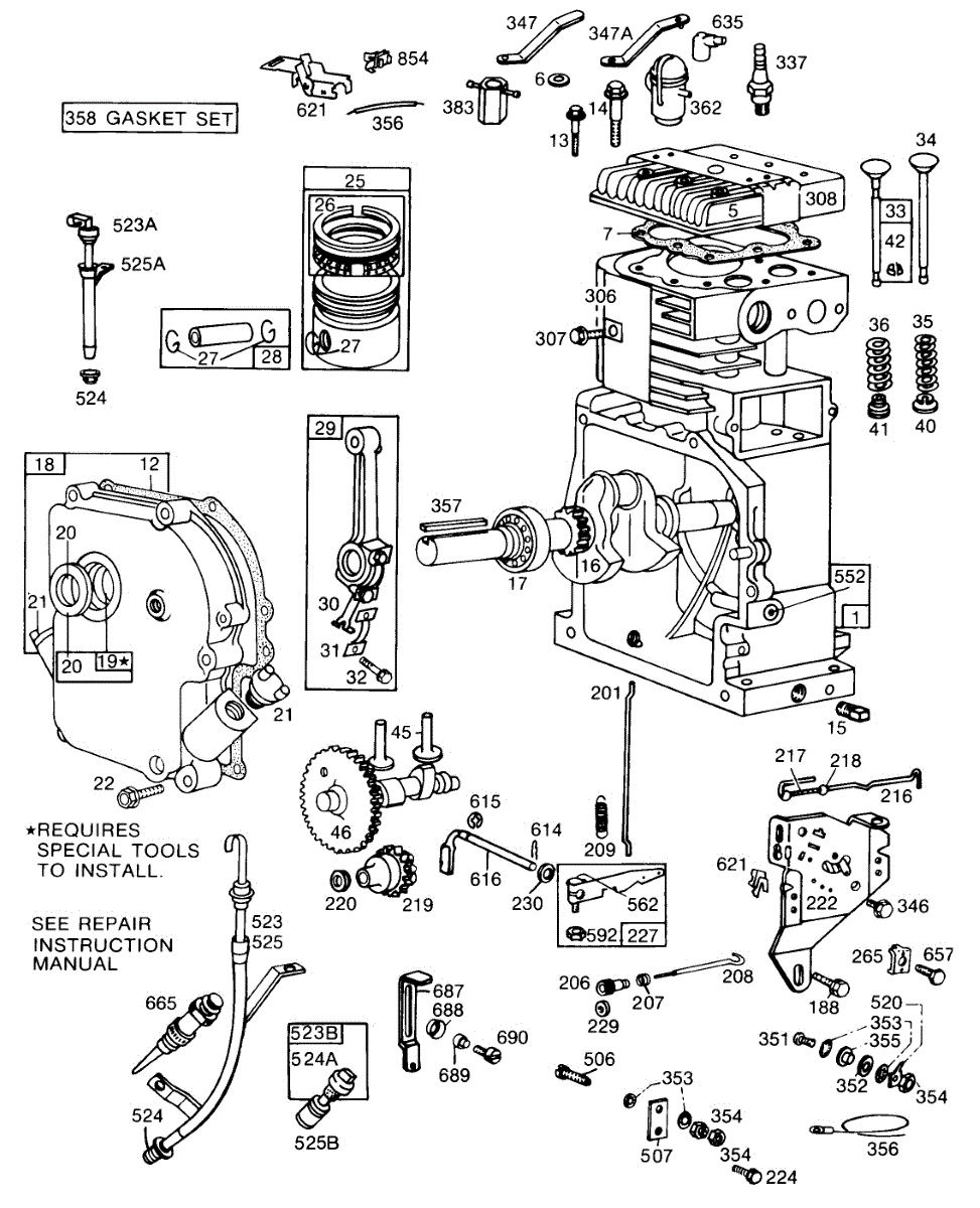 Parts for Briggs & Stratton 190402-1662-99: Cyl,Crankcase,Piston,Control Parts