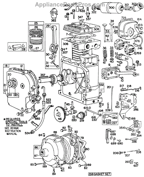 Parts for Briggs & Stratton 190412-0137-99: Cyl,Crankcase,Piston,Control Parts