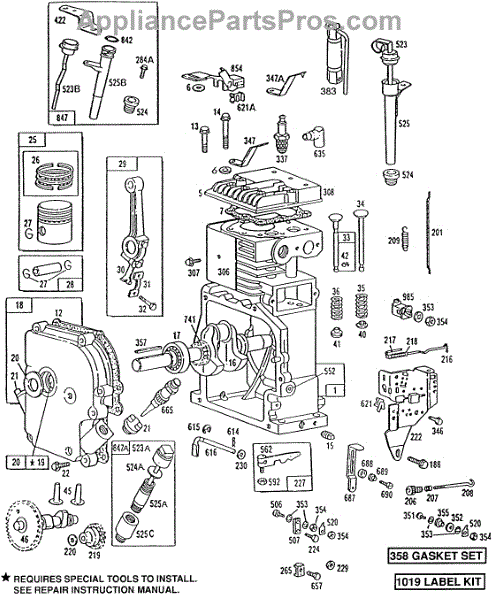 Parts for Briggs & Stratton 190432-2690-01: Cyl,Crankcase,Piston,Control Parts