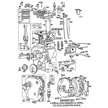 Parts for Briggs & Stratton 100202-0274-99: Cyl,Crnkcse,Piston,Gear Case Parts