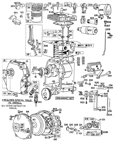 Parts for Briggs & Stratton 080202-1019-99: Cyl,Gear Case,Muffler,Piston Parts