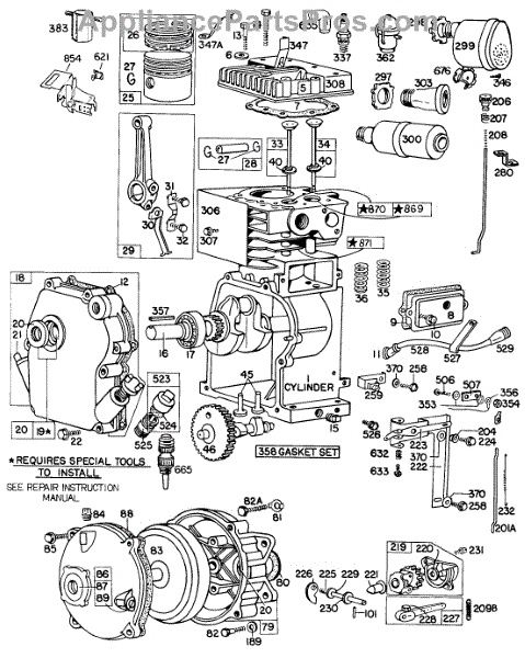Parts for Briggs & Stratton 081202-0182-99: Cyl,Gear Case,Muffler,Piston Parts