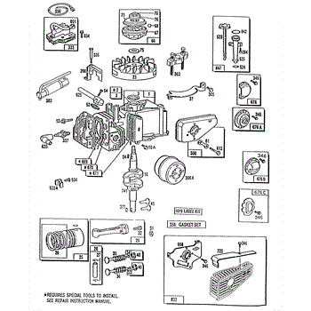 Parts for Briggs & Stratton 090702-0178-01: Cyl Head,Cylinder,Piston Parts