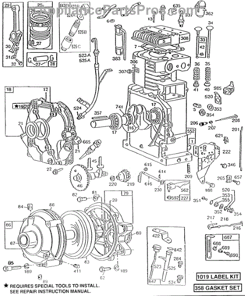 Complete engine gasket set seals critical engine components to prevent oil and air leaks. Replace when rebuilding your engine or if gaskets show wear. Verify fit with your engine model number before ordering.