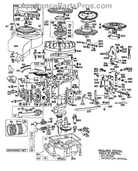 Parts for Briggs & Stratton 190702-0857-99: Cyl,Muffler,Piston,Sump,Rewind Parts