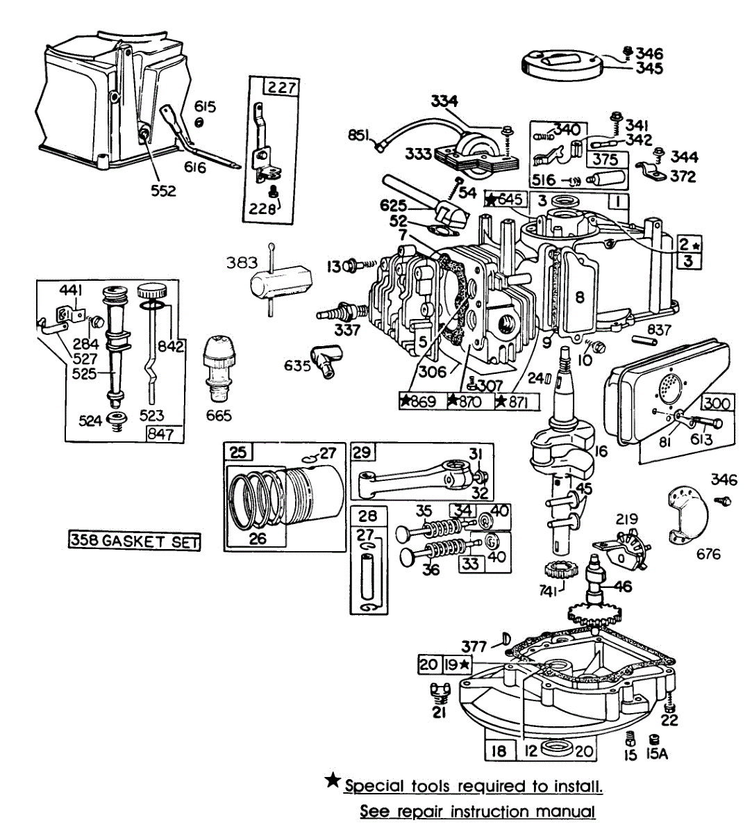 Parts for Briggs & Stratton 094988-0175-99: Cyl, Mufflers, Piston, Sump Parts