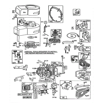 Parts for Briggs & Stratton 110908-1245-01: Cyl,Mufflers,Piston,Oil Fill Parts