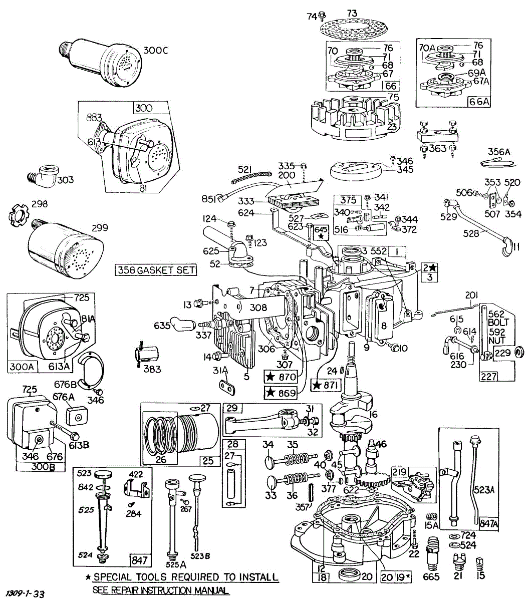 Parts for Briggs & Stratton 130902-0213-99: Cyl, Mufflers, Piston, Sump Parts