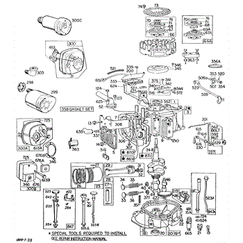 Parts for Briggs & Stratton 130902-0448-99: Cyl, Mufflers, Piston, Sump Parts