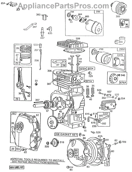 Parts for Briggs & Stratton 112212-0686-02: Cyl,Oil Fill,Piston,Mufflers Parts