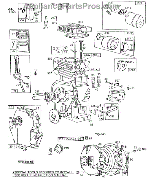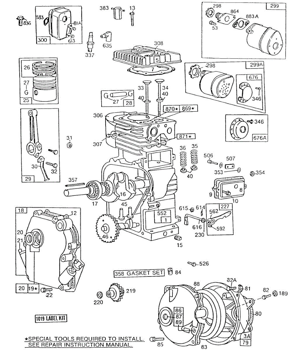 Parts for Briggs & Stratton 112252-4049-02: Cyl,Oil Fill,Piston,Mufflers Parts