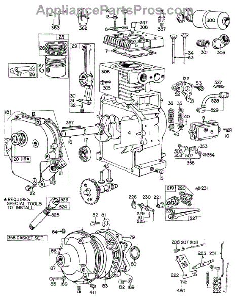 Parts for Briggs & Stratton 141207-5045-14: Cyl, Piston, Muffler, Crnkcse Parts