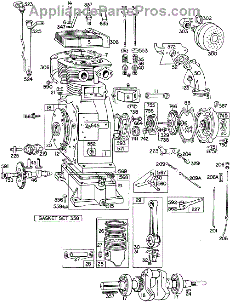 Parts for Briggs & Stratton 301431-0133-99: Cyl, Piston, Muffler, Crnkcse Parts