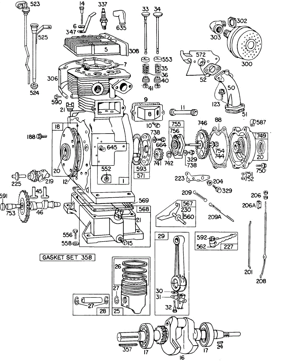 Parts for Briggs & Stratton 325431-0132-99: Cyl, Piston, Muffler, Crnkcse Parts