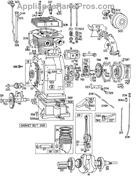 Parts for Briggs & Stratton 325435-0127-99: Cyl, Piston, Muffler, Crnkcse Parts