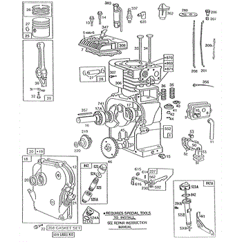 Parts for Briggs & Stratton 132432-0266-01: Cyl, Piston, Oil Fill,Crnkcse Parts