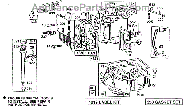 Parts for Briggs & Stratton 190702-6005-01: Cyl, Sump, Oil Fill,Governor Parts