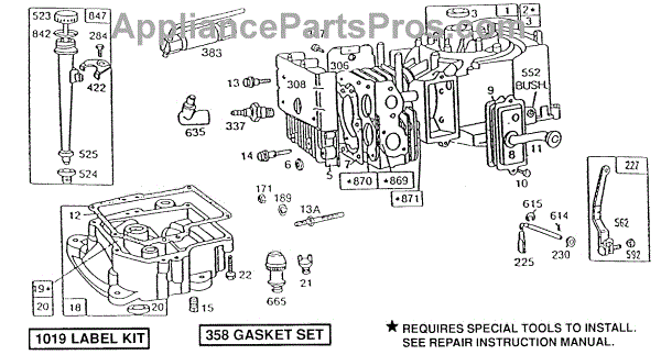 Parts for Briggs & Stratton 191702-6044-01: Cyl, Sump, Oil Fill,Governor Parts