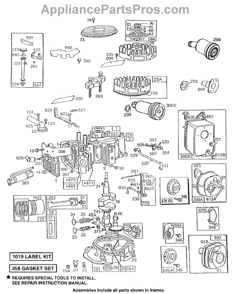 Parts for Briggs & Stratton 132925-0145-01: Cyl, Sump, Piston, Mufflers Parts