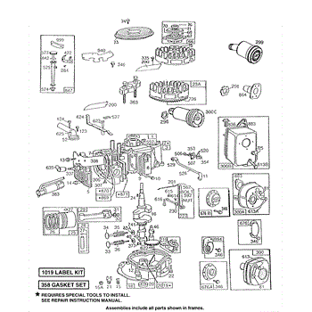 Parts for Briggs & Stratton 132982-0178-02: Cyl, Sump, Piston, Mufflers Parts