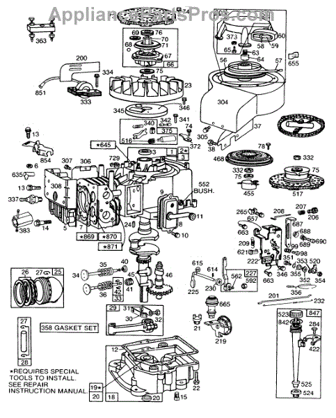 Parts for Briggs & Stratton 170701-1610-99: Cyl, Sump, Piston,Oil Fill Parts