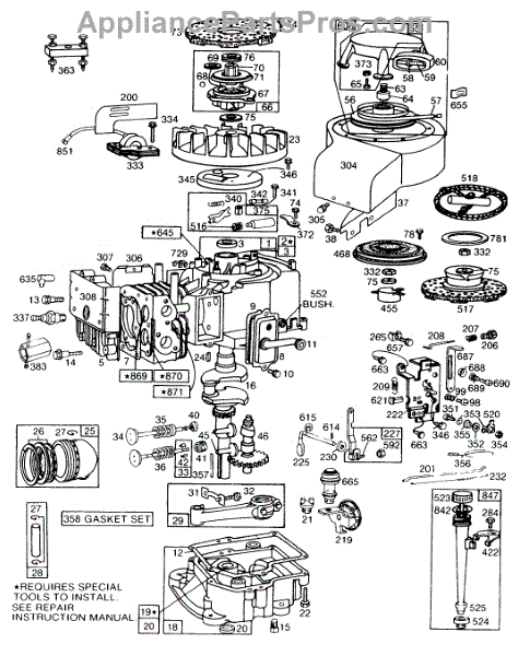 Parts for Briggs & Stratton 190707-1184-99: Cyl, Sump, Piston,Oil Fill Parts