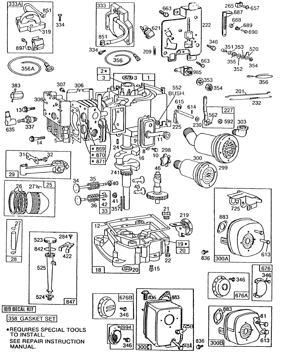 Parts for Briggs & Stratton 190707-2203-01: Cyl, Sump, Piston,Oil Fill Parts