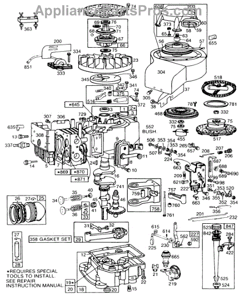 Parts for Briggs & Stratton 191702-1159-99: Cyl, Sump, Piston,Controls Parts