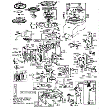 Parts for Briggs & Stratton 191707-0646-99: Cyl, Sump, Piston,Controls Parts