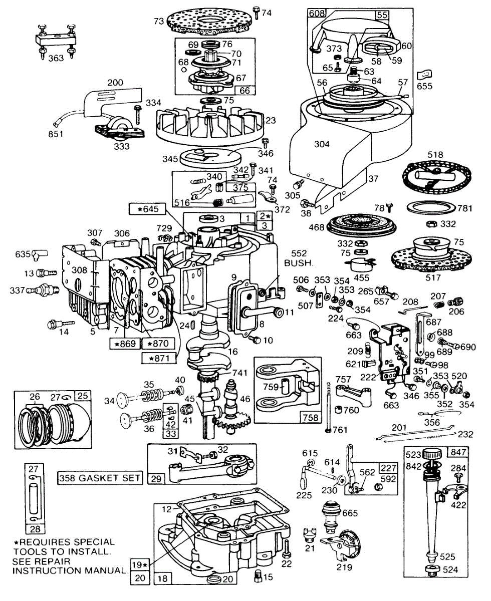 Parts for Briggs & Stratton 191707-5527-99: Cyl, Sump, Piston,Controls Parts