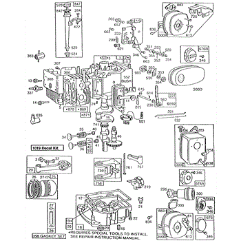 Parts for Briggs & Stratton 193702-0135-01: Cyl,Sump,Piston,Mufflers Parts