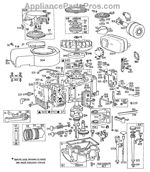 Parts for Briggs & Stratton 251707-0149-99: Cyl,Sump,Piston,Rewind,Oil Parts