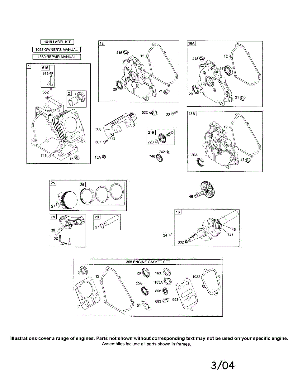 Parts for Briggs & Stratton 120312-0138-E1: Cylinder Assembly / Engine Gasket Set Parts