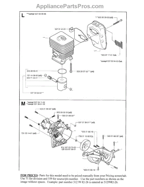 Parts for Husqvarna 123L: Cylinder Assembly, Housing, Clutch Drum Parts