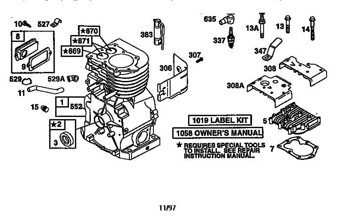 Parts for Briggs & Stratton 135200-135299 (0700-0717): Cylinder Assembly Parts