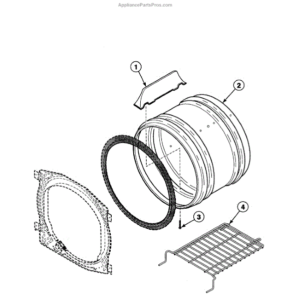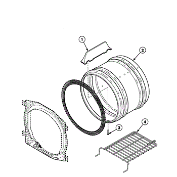 This is the rotating dryer cylinder assembly. Replacing a dented, rusted, or out-of-round cylinder restores smooth tumbling and helps prevent snags, noise, and uneven drying performance.