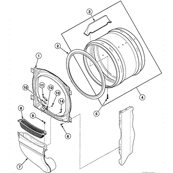 This front bulkhead assembly forms the dryer's front drum support and air seal. Replacing a worn or damaged bulkhead restores smooth drum rotation, reduces noise, and helps maintain proper airflow for consistent drying performance.