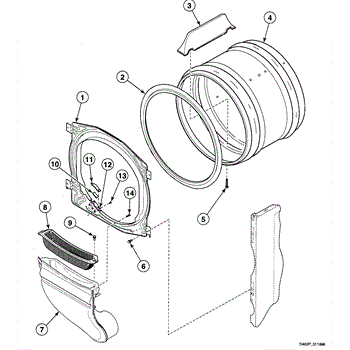 This front bulkhead assembly forms the dryer's front drum support and air seal. Replacing a worn or damaged bulkhead restores smooth drum rotation, reduces noise, and helps maintain proper airflow for consistent drying performance.