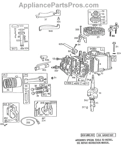 Parts for Briggs & Stratton 092502-3102-05: Cylinder Assy, Piston Assy Parts