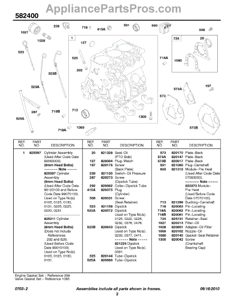 Parts for Briggs & Stratton 582447-0224-E2: Cylinder, Back Plate, Oil Parts