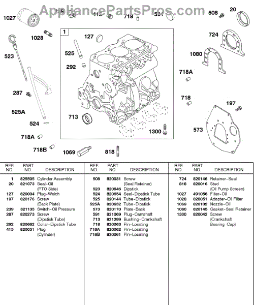 Parts for Briggs & Stratton 583447-0317-E2: Cylinder, Back Plate, Oil Parts