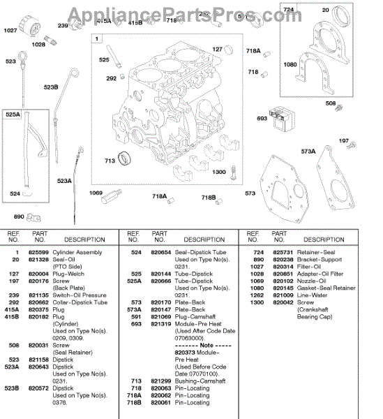 Parts for Briggs & Stratton 58A447-0234-99: Cylinder, Back Plate, Oil Parts