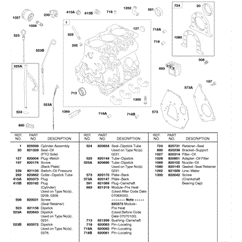 Parts for Briggs & Stratton 58A447-0301-E2: Cylinder, Back Plate, Oil Parts