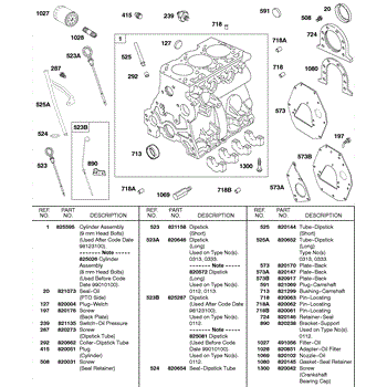 Parts for Briggs & Stratton 580447-0112-E2: Cylinder, Backplate, Oil, Dipsticks Parts