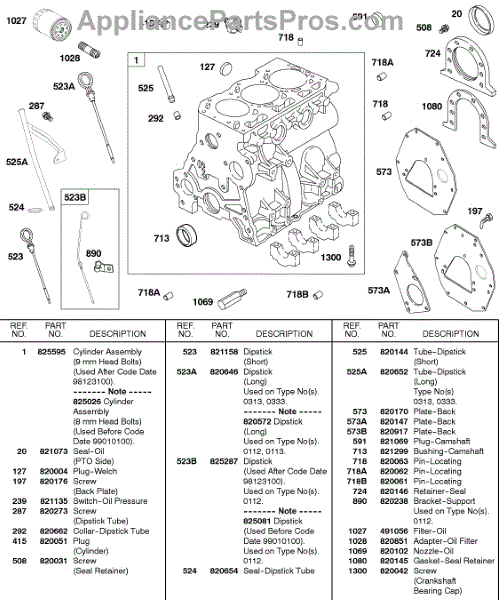 Parts for Briggs & Stratton 580447-0227-E2: Cylinder, Backplate, Oil, Dipsticks Parts